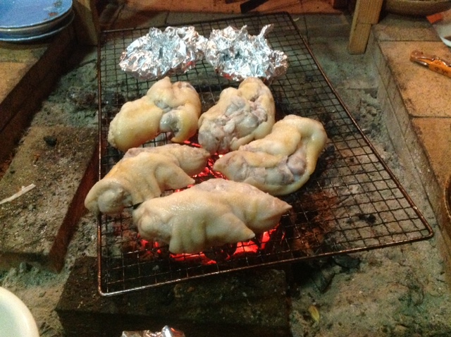 特に若者の賄いに心を打たれた。嬉々として天ぷらを揚げる人、炭火で焼肉を焼く若者、煮物を作る人、庭で育てたでっかい椎茸をバーター焼きにする人。厳つい若者が私に「次は何を飲まれますか?」などと声を掛けてくれる、涙ものです。