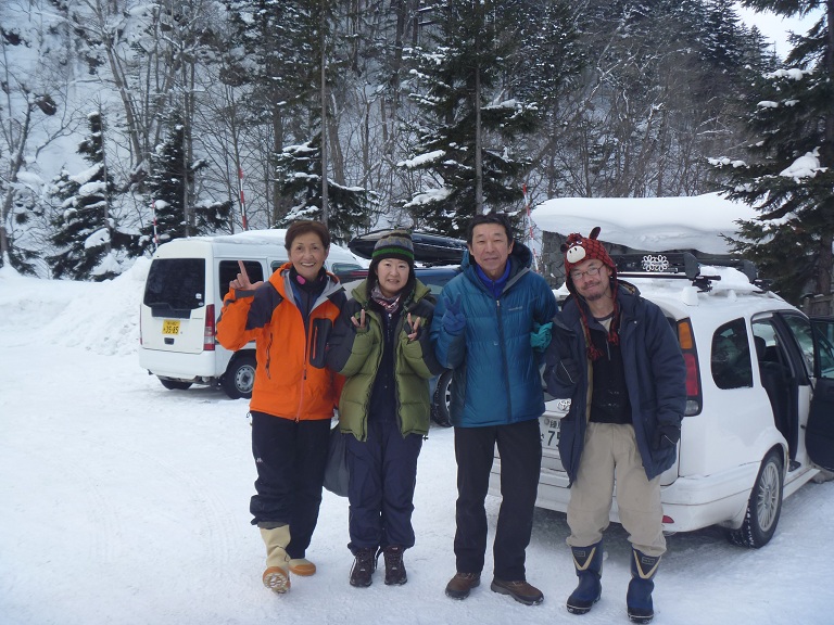 翌日は銀河の滝へ向うも釧路帯広労山など4パーティが取り付いていたため変更、NAKA滝に向かいましたが、ここもまた先行パーティが取り付いてトップロープを張るとのこと。結局錦糸の滝に行くことになりました。