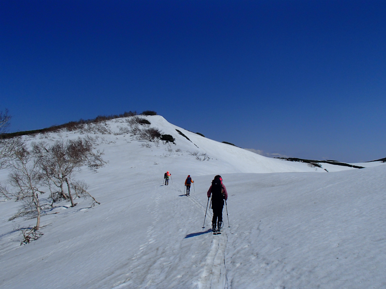 広い斜面を浜益岳に向かって登ります