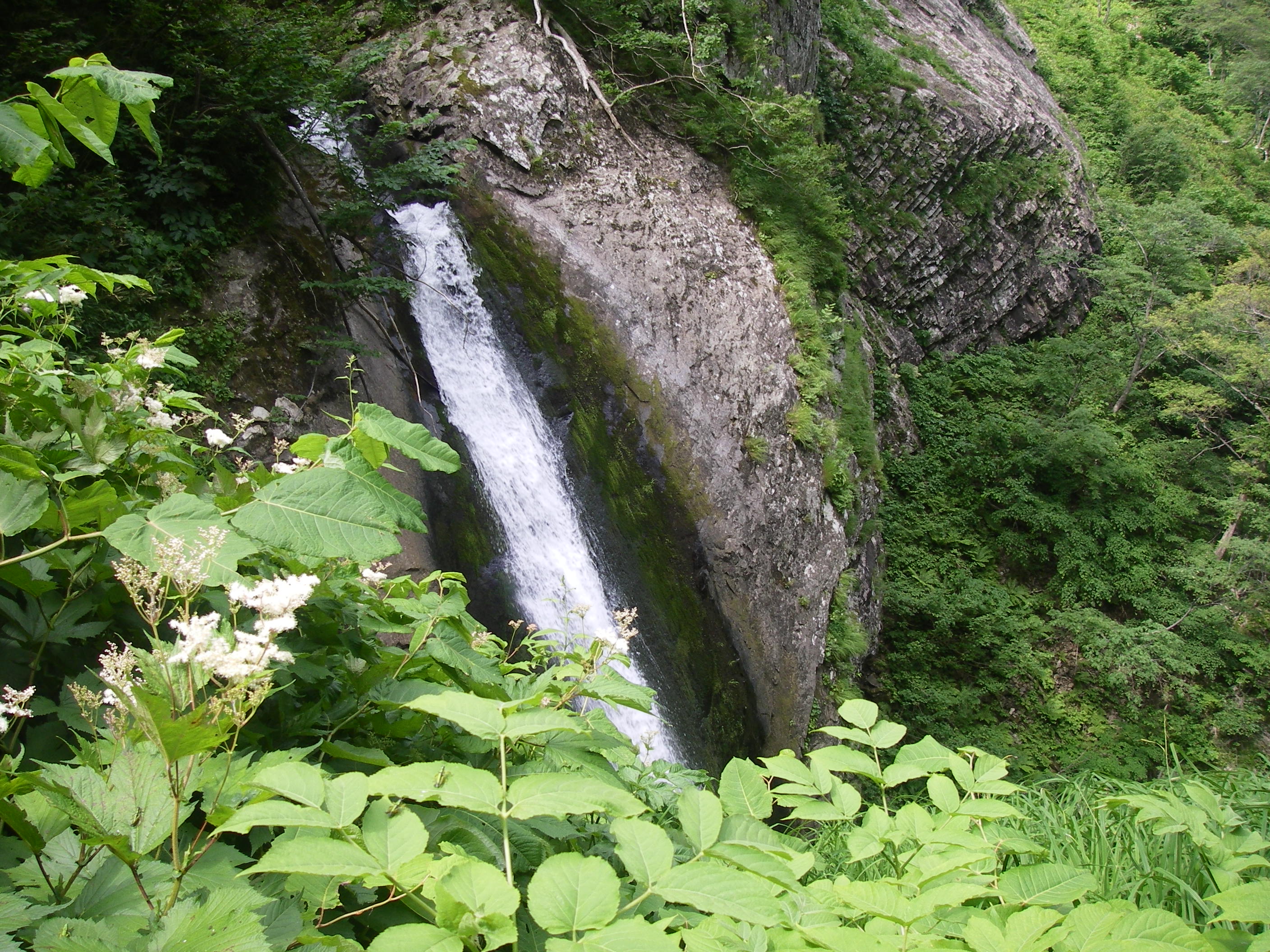 15分歩くと大滝が現れてくる。2段40m。この沢の核心部分だ。