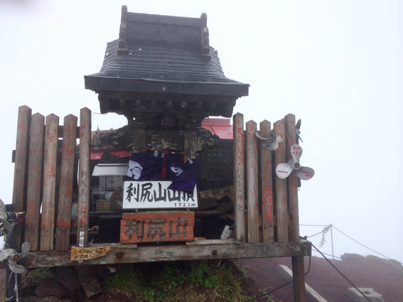 やったー!!頂上!!ガスってて展望はゼロですがうれしーーー!!