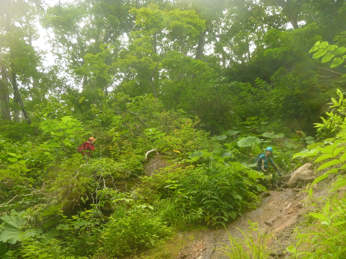 右岸の斜度のキツイ高巻きは悪戦苦闘。