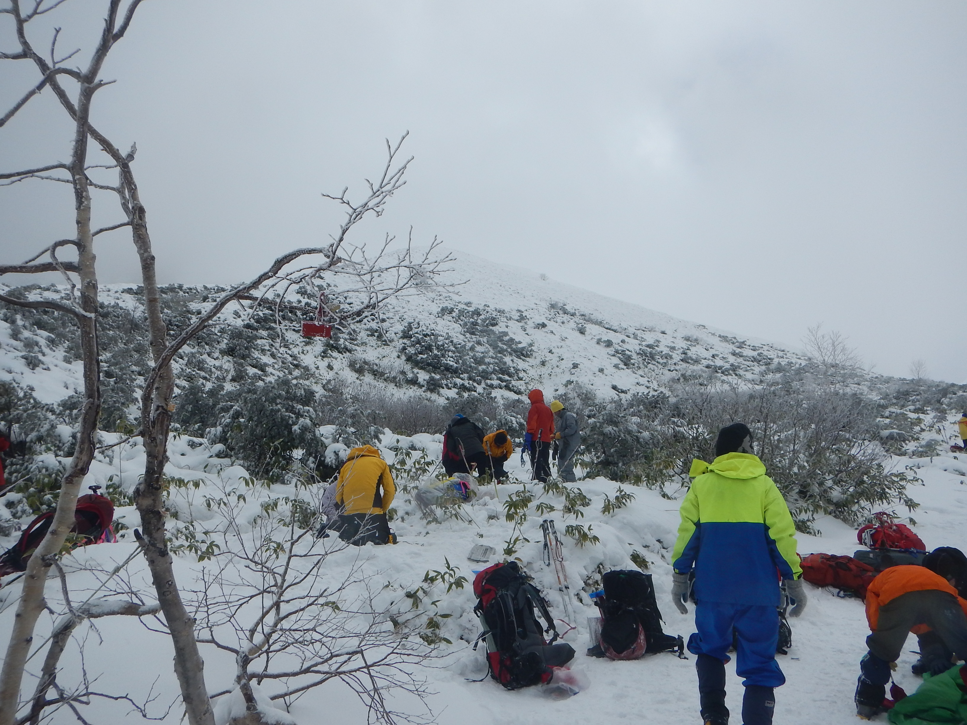 安政火口の上で、これから三段山に向けて実践訓練です。