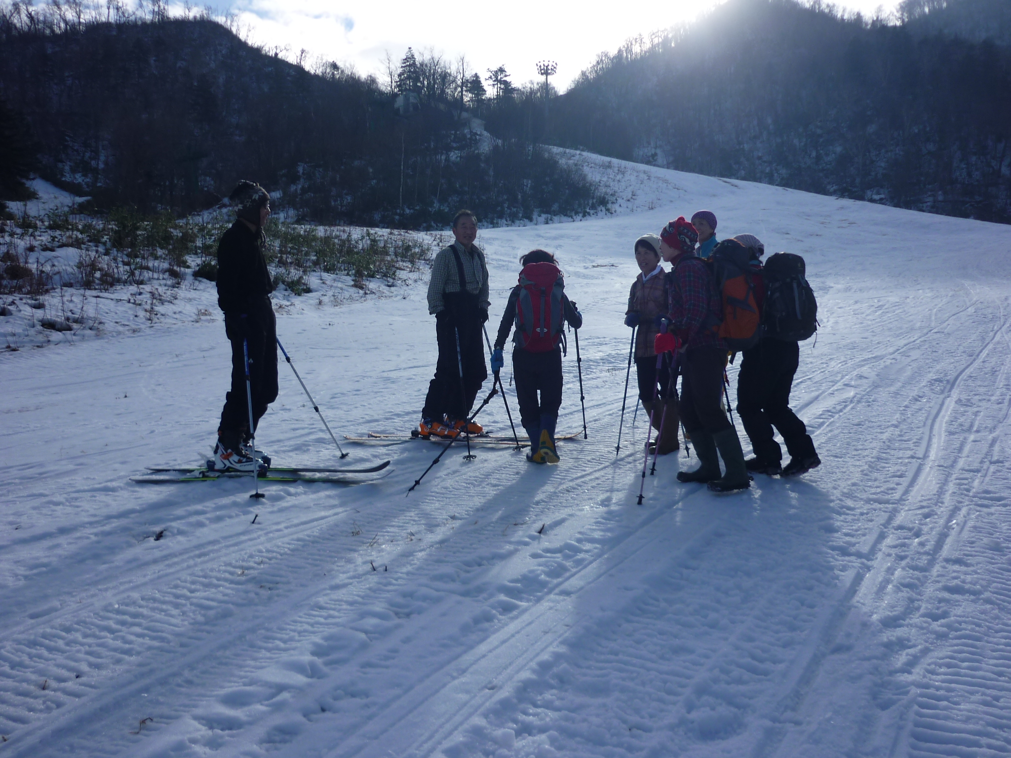 スキーの練習をしている人がいました。近づいてみますと、あらぁまぁーびっくり、TAさんとTOさんでした。入門前のスキーの練習だそうです、偉いですねー。