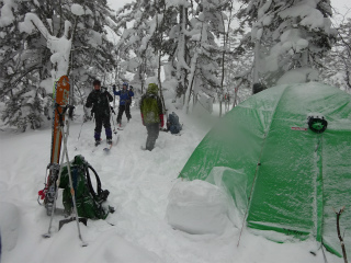 テン場ではエゾテン?が我々を迎えてくれました。1040m地点原始ヶ原でキャンプ。