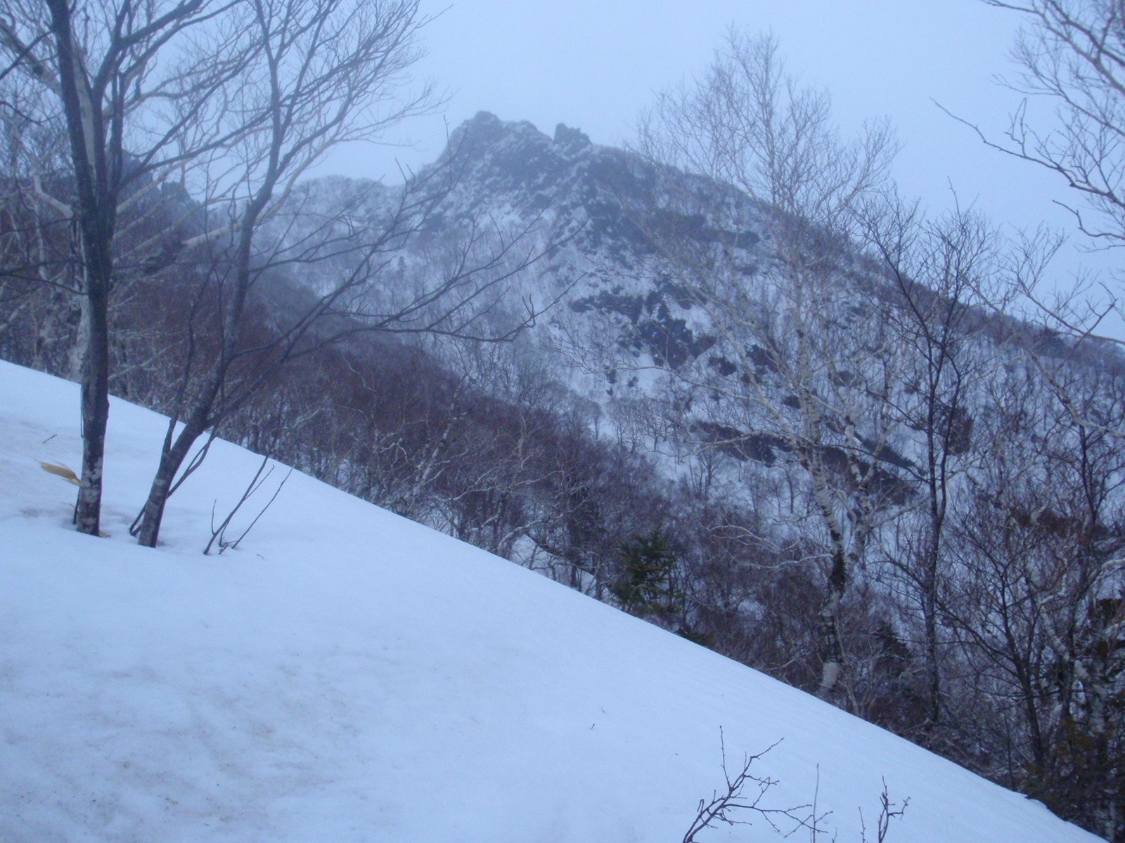 取り付きは北東尾根から。スキーを履いてますが荷物が重くてつらい。。。