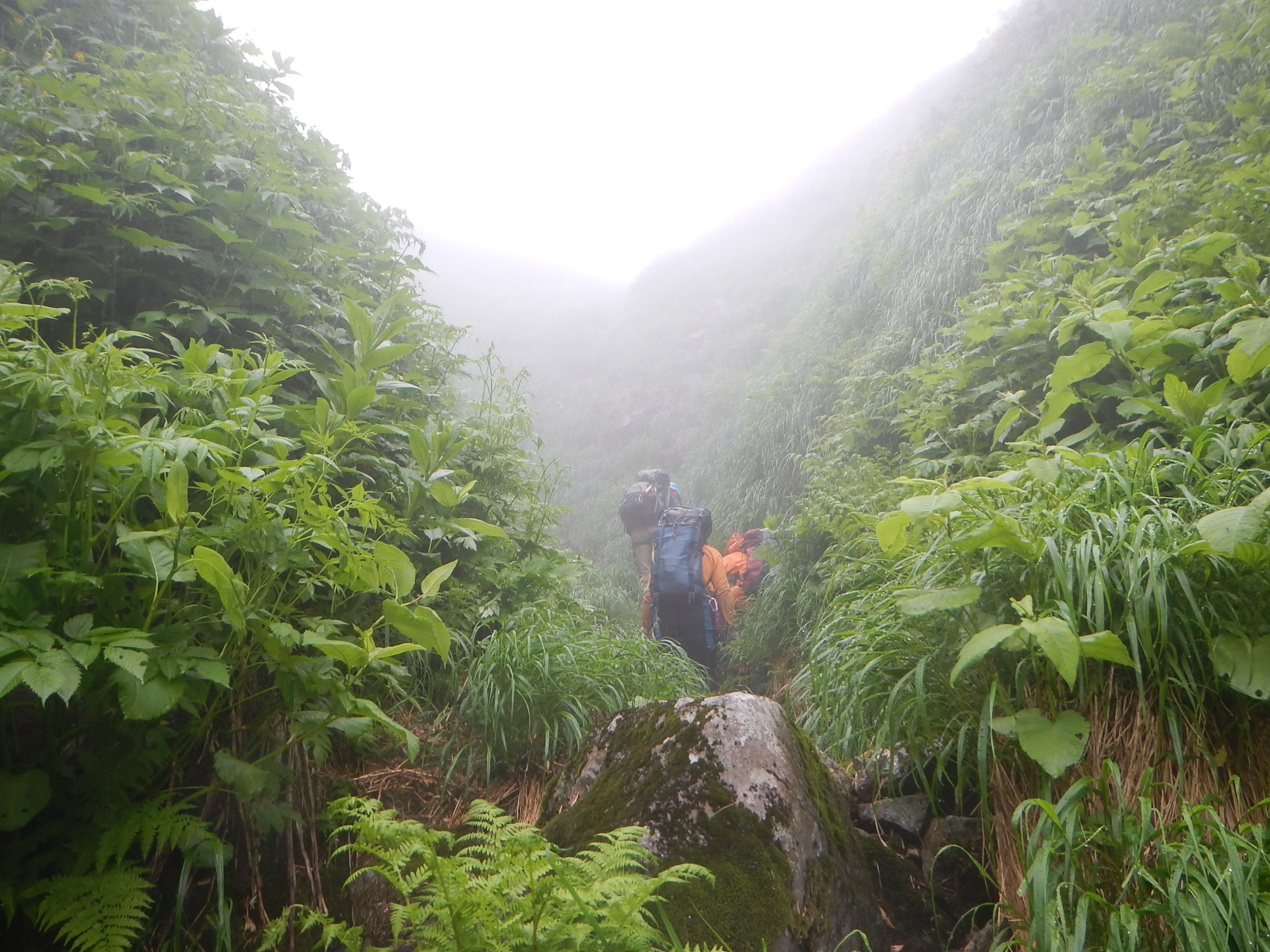 草付きの急登を登り笹藪とハイマツを漕いで1時間ほど、息も絶え絶えやっと夏道に出ていきました。