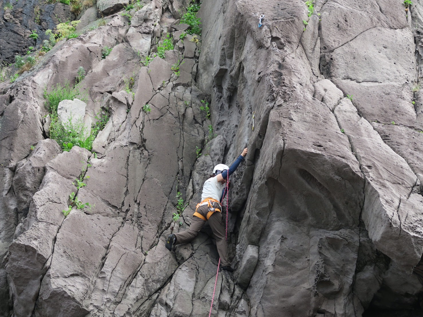 ボナニート5.8。初めての岩場で我先にリードする姐御。終了点はすぐそこにあるというのに、物足りないのか隣のルートに合流し、そのままさらに登るという貪欲ぶり!
