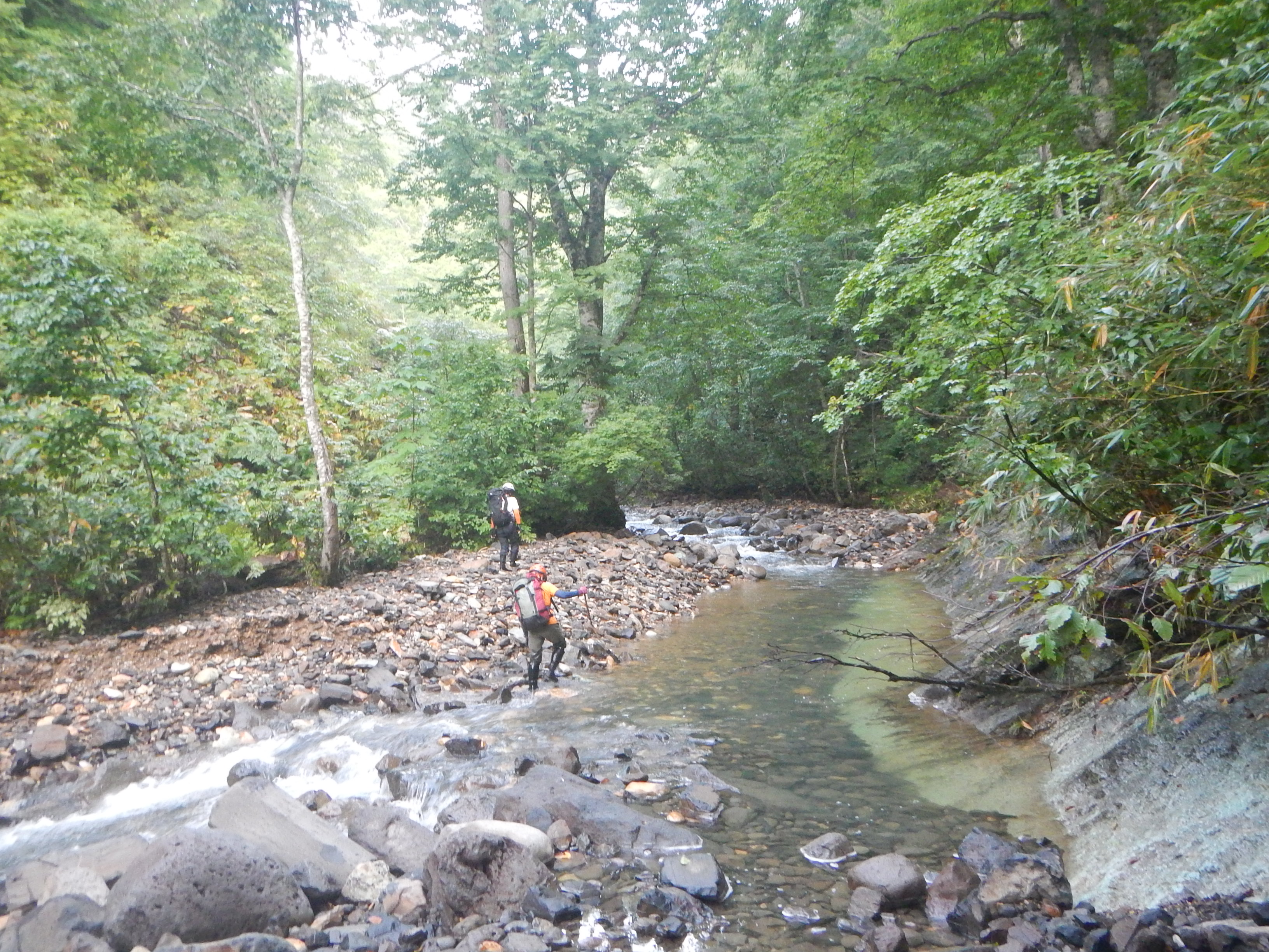 先行するのはhidejiパーティ。我慢すれば水に入らずへつれるのだが、水につかることも