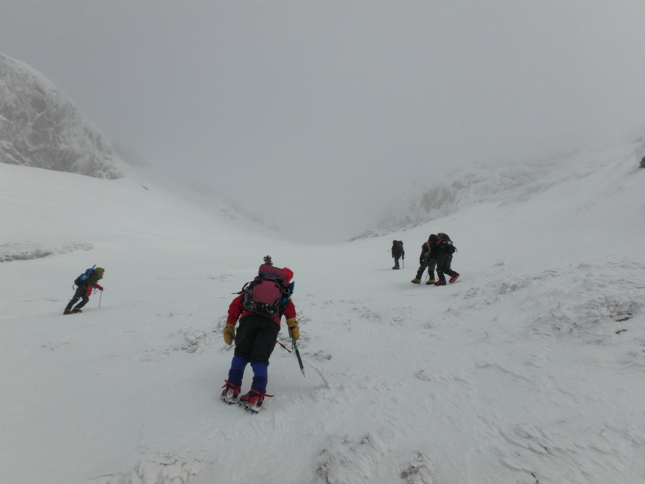 段々と傾斜がきつくなってきました。直登する人、ジグを切る人其々です。