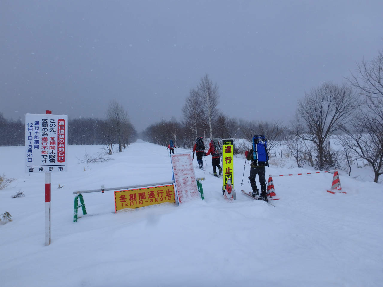 布部川沿いまで来ました。林道にはトレースがありラッセル無しでした。