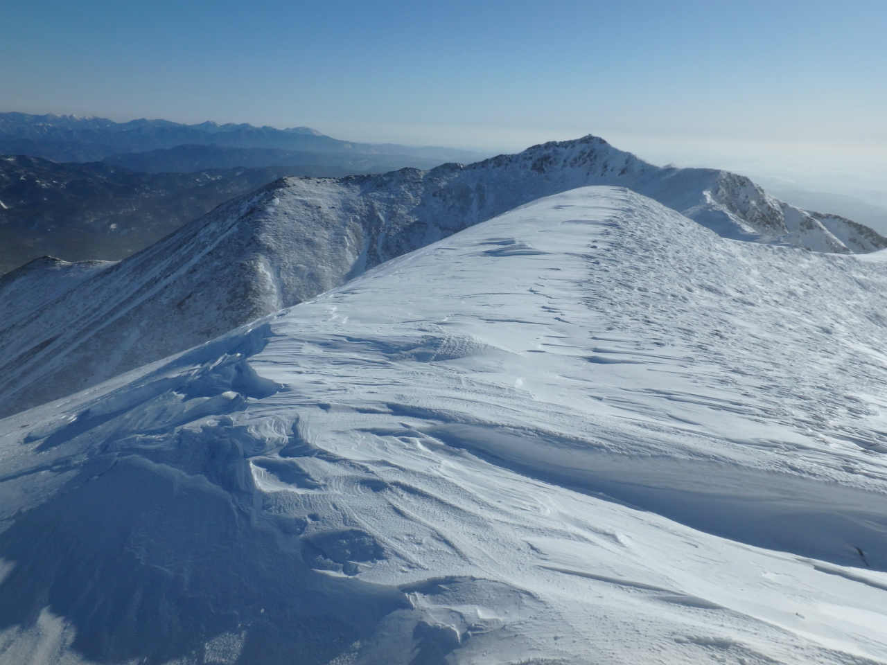 下ホロ方面です。下ホロは中央に見えているピークの右肩の遥か奥、遠いです。