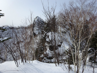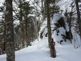 結局は進み、ここまではスノーシューで来ましたが、ツボ足で進みました。ピッケルもアイゼンも持っているんですが、面倒くさいのでそのまま。