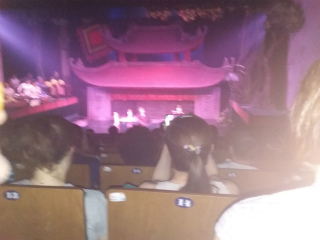 帰りは飛行機でハノイに戻り、これも定番、水上人形劇を観に、劇場で直接買うと10万ドン、500円です。