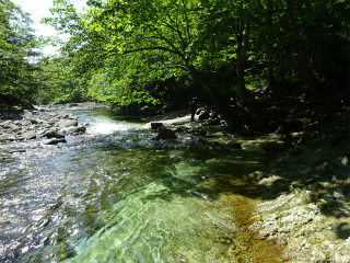8:00駐車場~8:15入渓~8:20白老大滝~9:00八重の沢出合い~10:10砥石沢下降~10:20駐車場