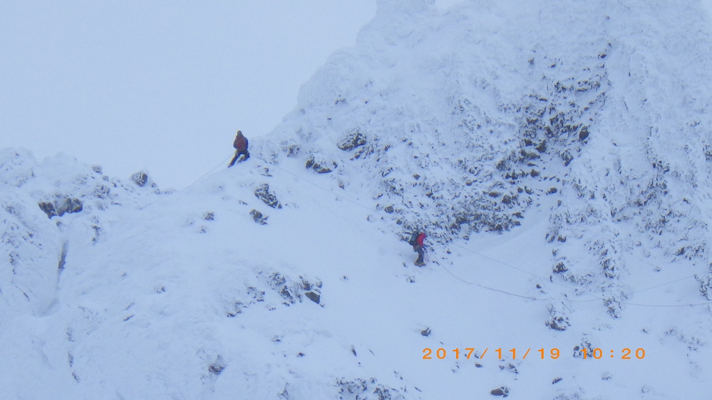 ↑ 斜度は45°位で、滑ったら100m位は滑落しそうです。
