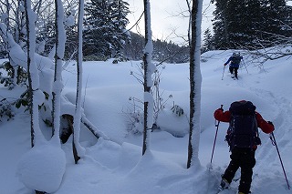 帰りは札幌岳への尾根を少し下り広い沢を下りました。こちらの方が登りもブッシュが少なくて快適です。