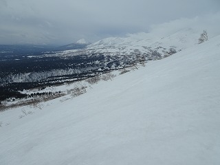 ベベツ岳方向、オプタテの頂上も風が強そう。今のところ風が弱く助かっています。