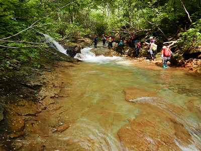 今年の沢入門山行は漁川と白水川に分かれて行いました。入門者は10名、この記録は白水川のパーティーの様子です。