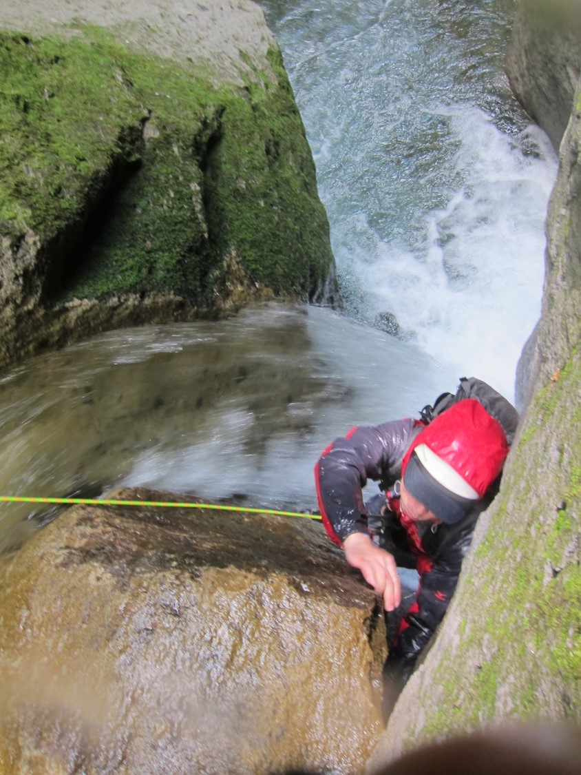 登攀要素のやや強い短めの沢で、最大の核心はクライミングではなく、水の冷たさと、長いゴルジュゆえの寒さ。下降は楽チンで、寒いことを除けば非常にお手軽な沢でした。が、メンバーであってもある程度経験がないと、厳しいかもしれません。