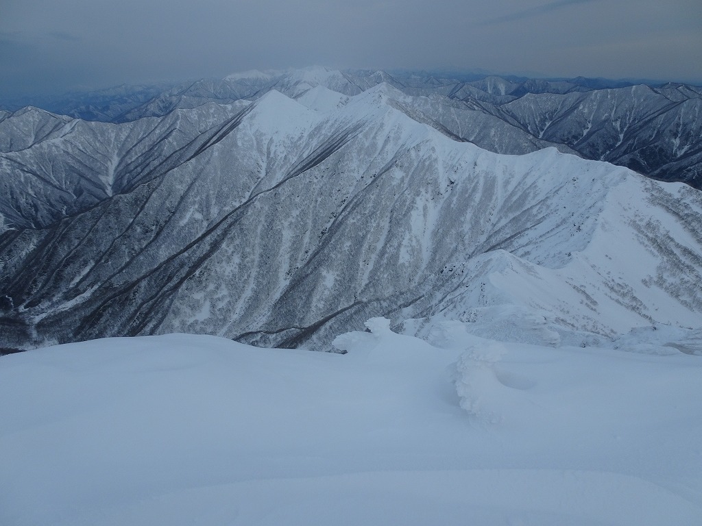 風が出てきて視界が悪くなりました。この写真はruiカメラです。自分のはシャッターが落ちなくなりました、設定がズレたようです。十勝岳→楽古岳は3時間で来たのですが、楽古岳→十勝岳は強風&吹雪&視界無く、難儀しました。GPSの電池も無くなり電池交換してやっと位置確認、十勝岳→テン場も30分で登ったのに下りでも1時間、テン場もやっと見つけました。こんなに天気が悪くなるとは思いませんでした、油断しました。テン場からの下りも難儀、翠明橋公園に下りると雨でした。楽しくも厳しい山行でした。ruiはチロロには行ったことがあるようですが、本格的な日高デビューの山行でした。