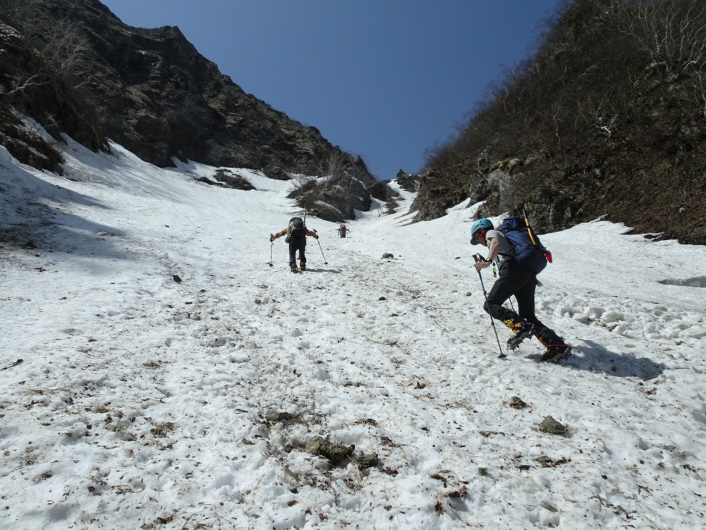 運営委員会企画がY子さん企画に変わったらしい、その自主山行にKぽんを除いたGW山行のメンバーが集まった。この時期の芦別岳の本谷は楽しい。軽い緊張感と少しの体力&また正しいルート取りの勉強にもなる。