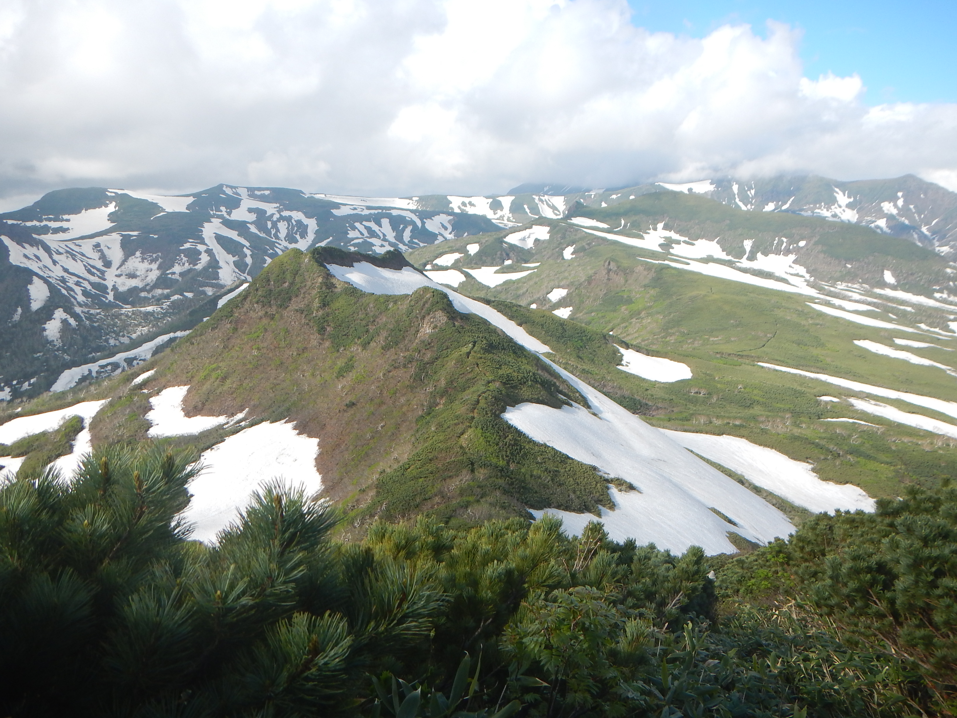 ツリガネ山へと続く稜線上の登山道。そして三仙台が見えるようになる。