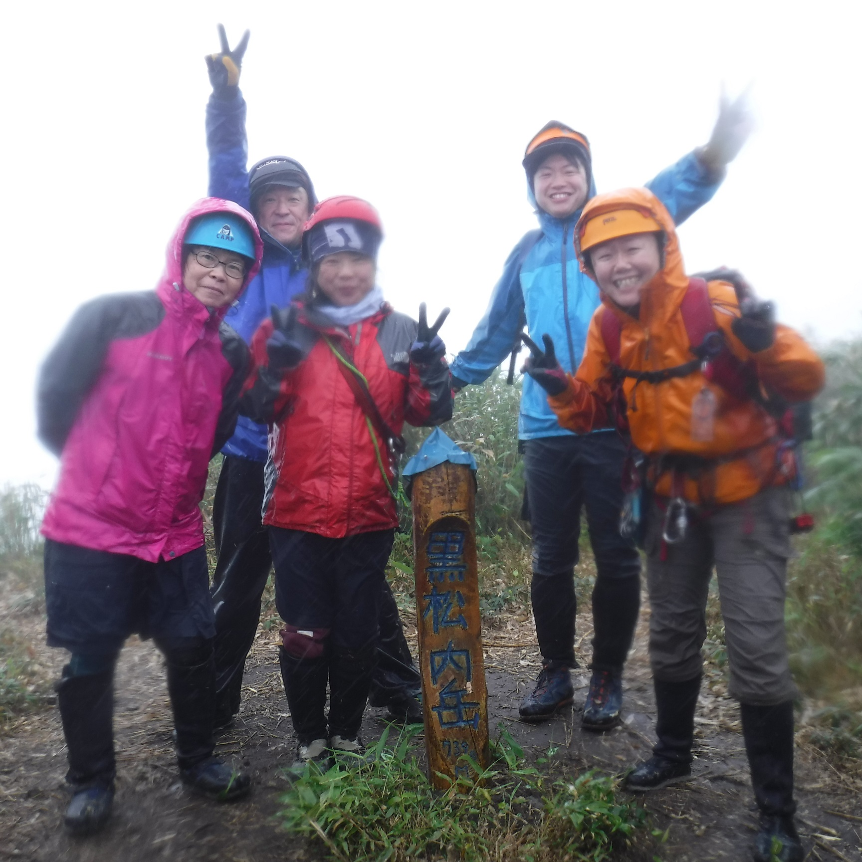 生憎のお天気で頂上からの展望無く、下山の夏道は滑りまくり!!