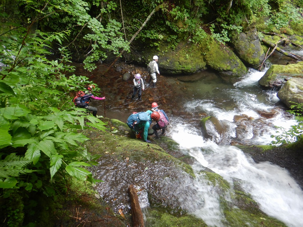 紋別から来るUさんが大雨で渚滑川が増水していたと心配してたが、白滝は雨が降っていなかった。奥白滝道の駅で待ち合わせ、平山登山口への道路を走り途中から上二股沢川林道に入る。すぐに上二股沢川の支流を横切るので、そこでメンバーを下ろし車を林道の入れるところまで置きに行く。1台が普通乗用車だが何とか思ったよりも入ることが出来た。RV車だともっと入ることが出来たが、多分1250mぐらいまで入ったと思う。余りにも帰りが遅いのでメンバーは心配して林道を登って様子見にきていた。支流のすぐ先には車を数台分は留めることができるスペースがある。沢は癒やし系だが、ちょこっとピリ辛な所がある。グレードは!☆?、それよりもちょっとは難しいかもしれない気がする。誰か行って教えてください。ネットでは記録が1件出てきたが、それを見て行ったのだが有り難うございました。