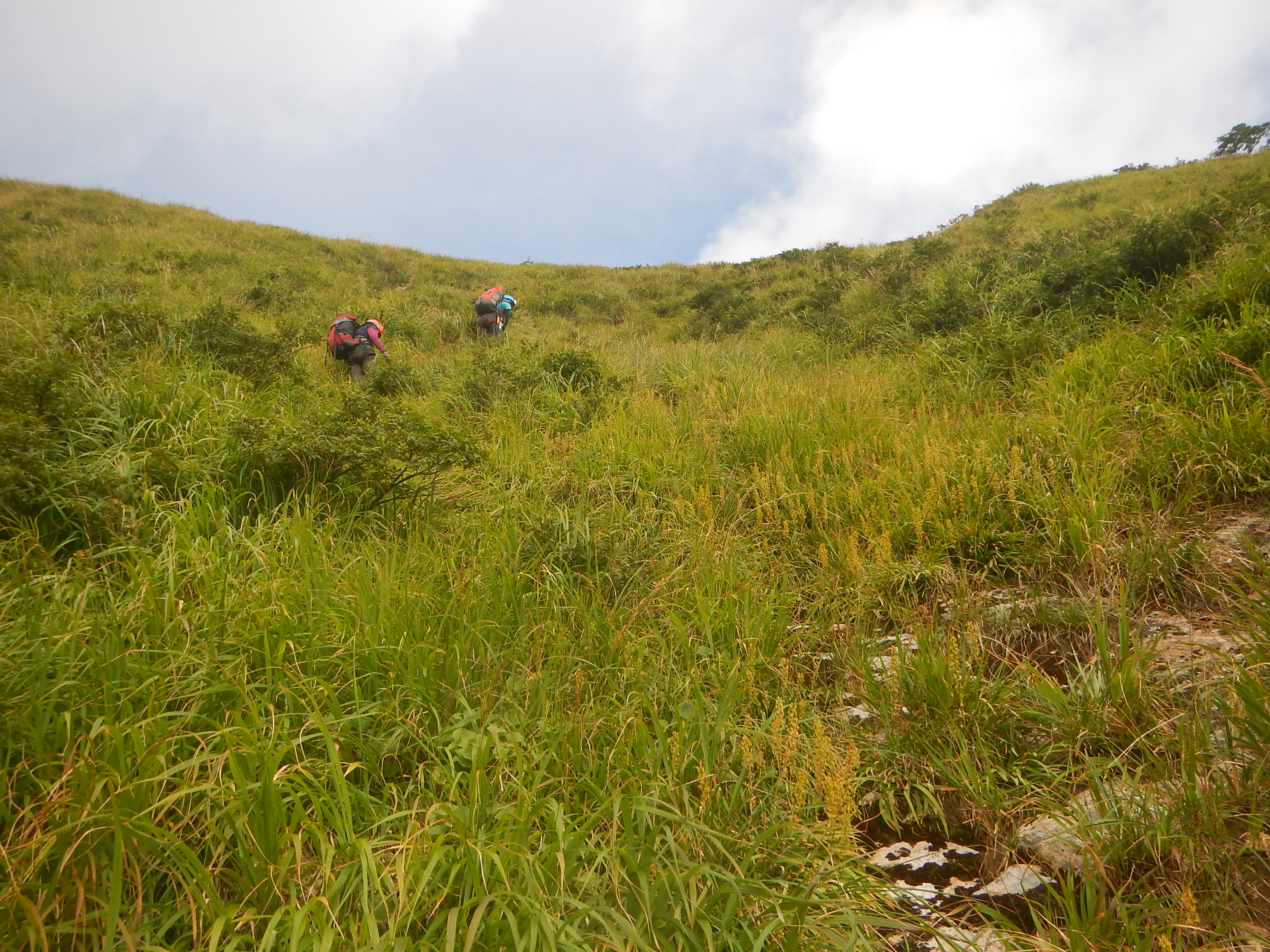 Co510m付近今回の核心2条15mの滝(水流の多い時は登っているルートにも水が流れ落ちるので2条の滝と呼ばれているらしい。)ここはロープを出してY子さんリードする。上部のテラスまでの苔が嫌らしかった~
