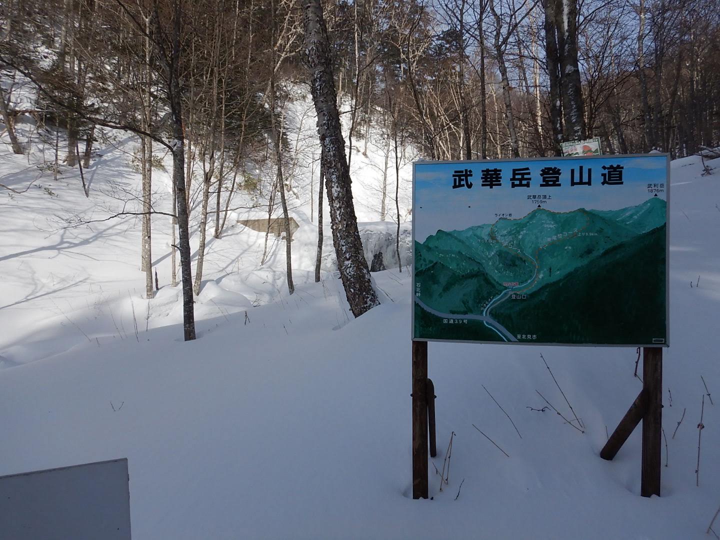 年末組メンバーは、若いT君(30代)+ナイスミドルI川さん+ちっちゃいおばさんの私。3人で頑張りましたが、雪の少なさに難儀し武利岳は❛無理❜でしたm(__)m