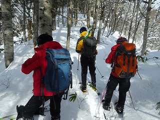 寒いので雪の締まりが無く、さらさらと崩れ落ち登りづらい。