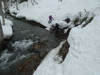 結局は下りて石伝いに沢を渡る。