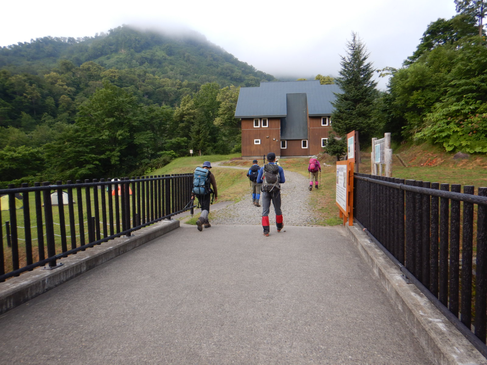 前夜は南暑寒荘前のキャンプ場に前泊、コロナ禍のため小屋は休業で管理人もいませんでした。曇り空の中を出発。