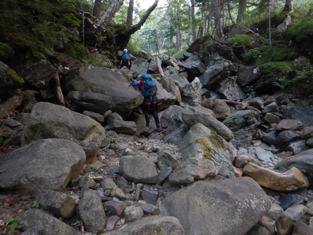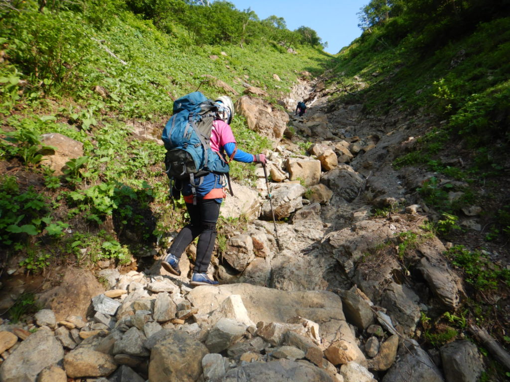 日高幌尻岳に登る車が沢山あったが、ゲートの前には車が無かった。千呂露川を遡行するのは我々の3人だけのようだ。天気が続いているので沢日和になりそうだ。先日の我が会のパーティは右股を行って時間がかかったようなので、今回は左股を往復することにした。