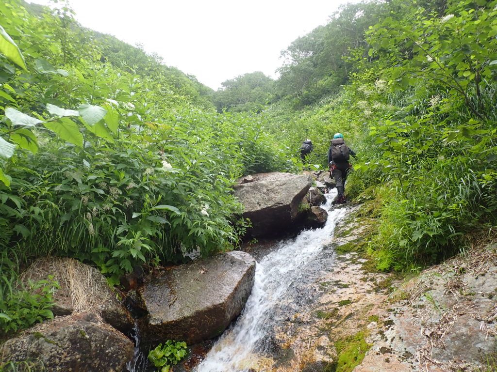 初夏の沢企画山行は、遊楽部岳周辺にて。太櫓川と臼別川に3パーティーが参加しました。臼別川左股沢には、1パーティーです。A田(L)、K田(SL)、朋ちゃんとの4人でした。
