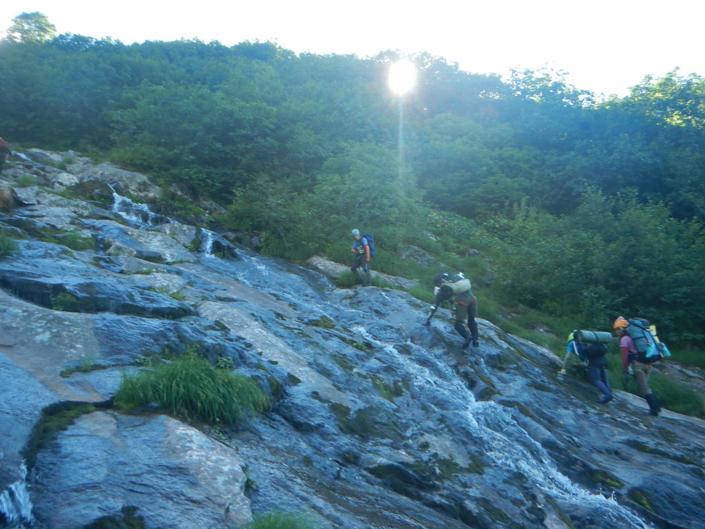 下りのナメ滝を慎重に下降する。