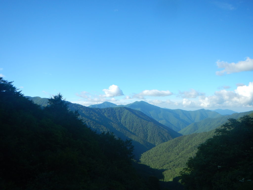 昨年の8月にも戸蔦別川林道に入ったが、昨年と同じ戸蔦別川橋を過ぎ地図上右側小沢の崩壊地点手前で通行止めになっていた。