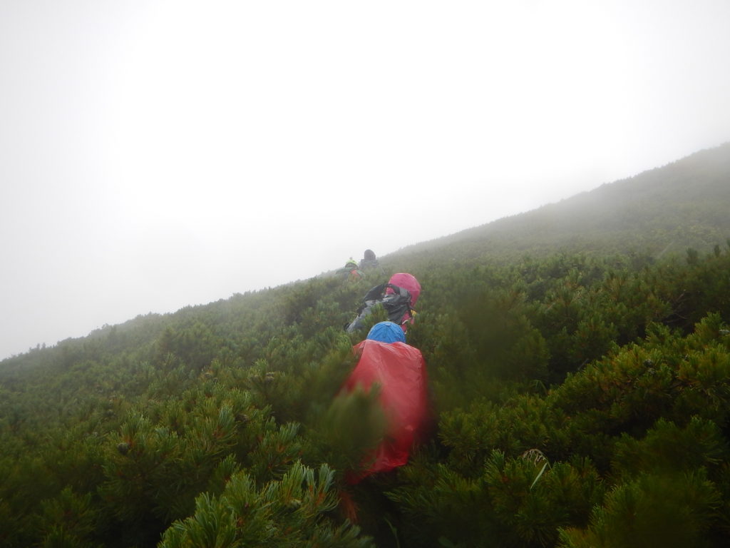 頂上への踏み跡はハイマツが被り歩きづらい