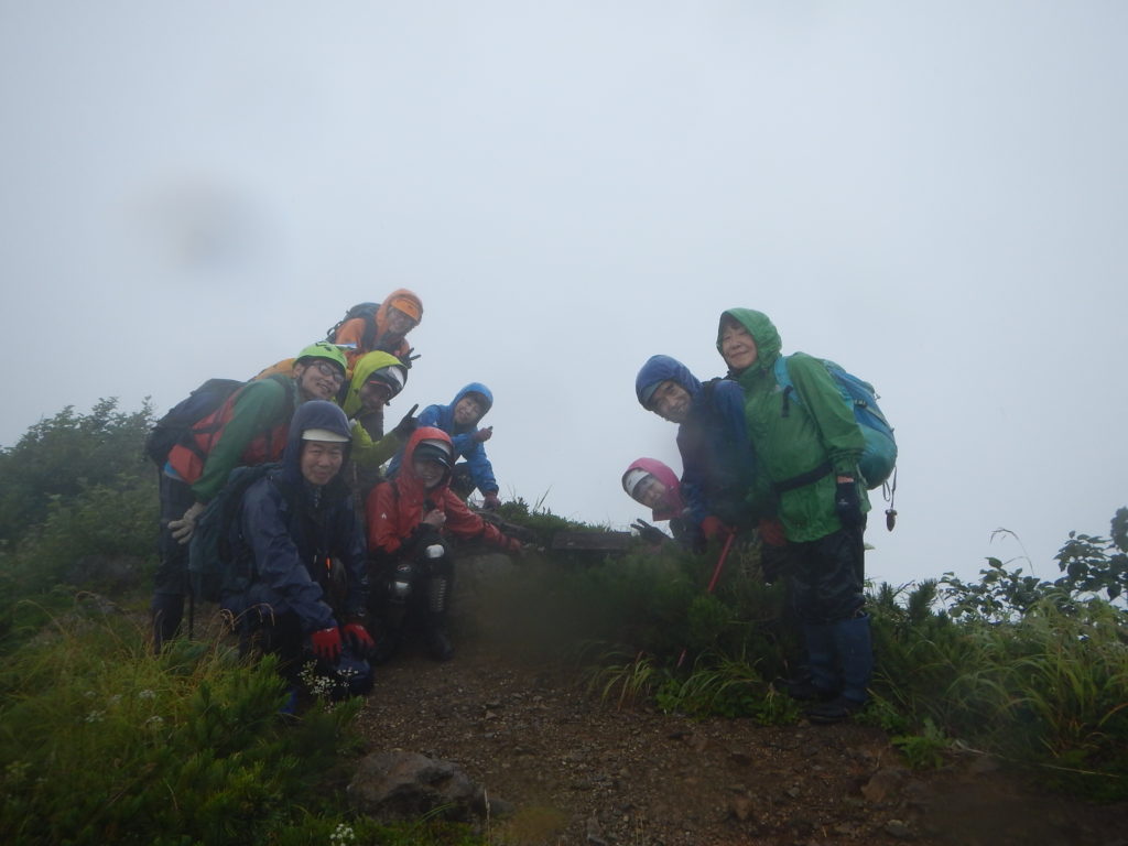 頂上到着~ 雨のなか皆さんご苦労さまでした。楽しみにしていた展望もなしでガッカリだけど頂上まで来れて良かった~