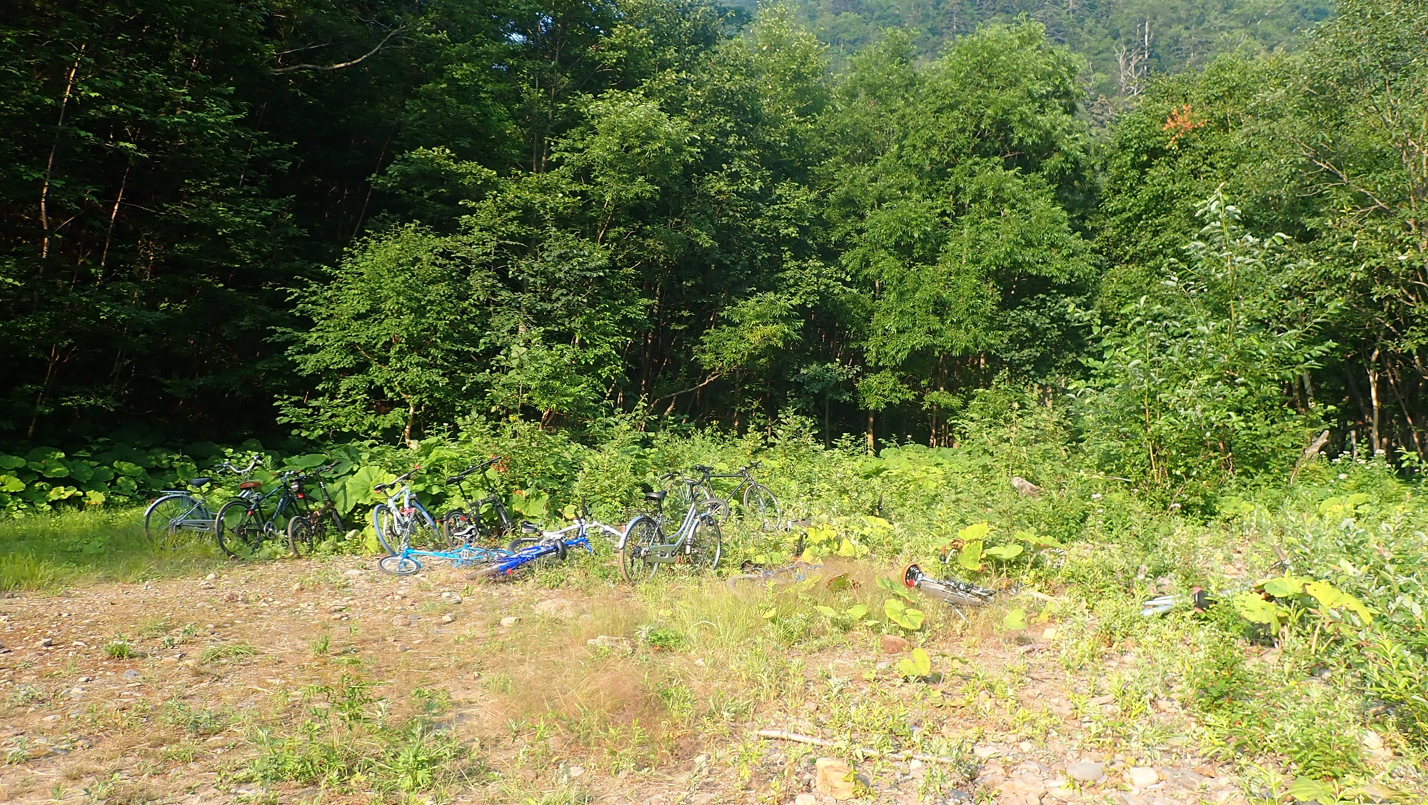 七ノ沢出合には仮設駐輪場が。パンクのリスクも恐れないママチャリの勇姿も!