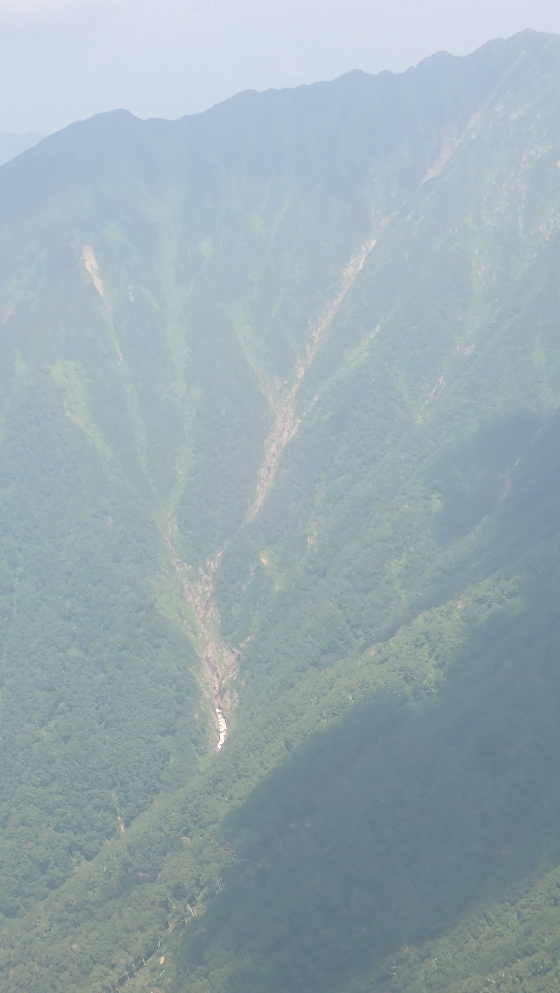 遠くの沢地形ズームで写す。日高の沢は急峻だな~と感じる