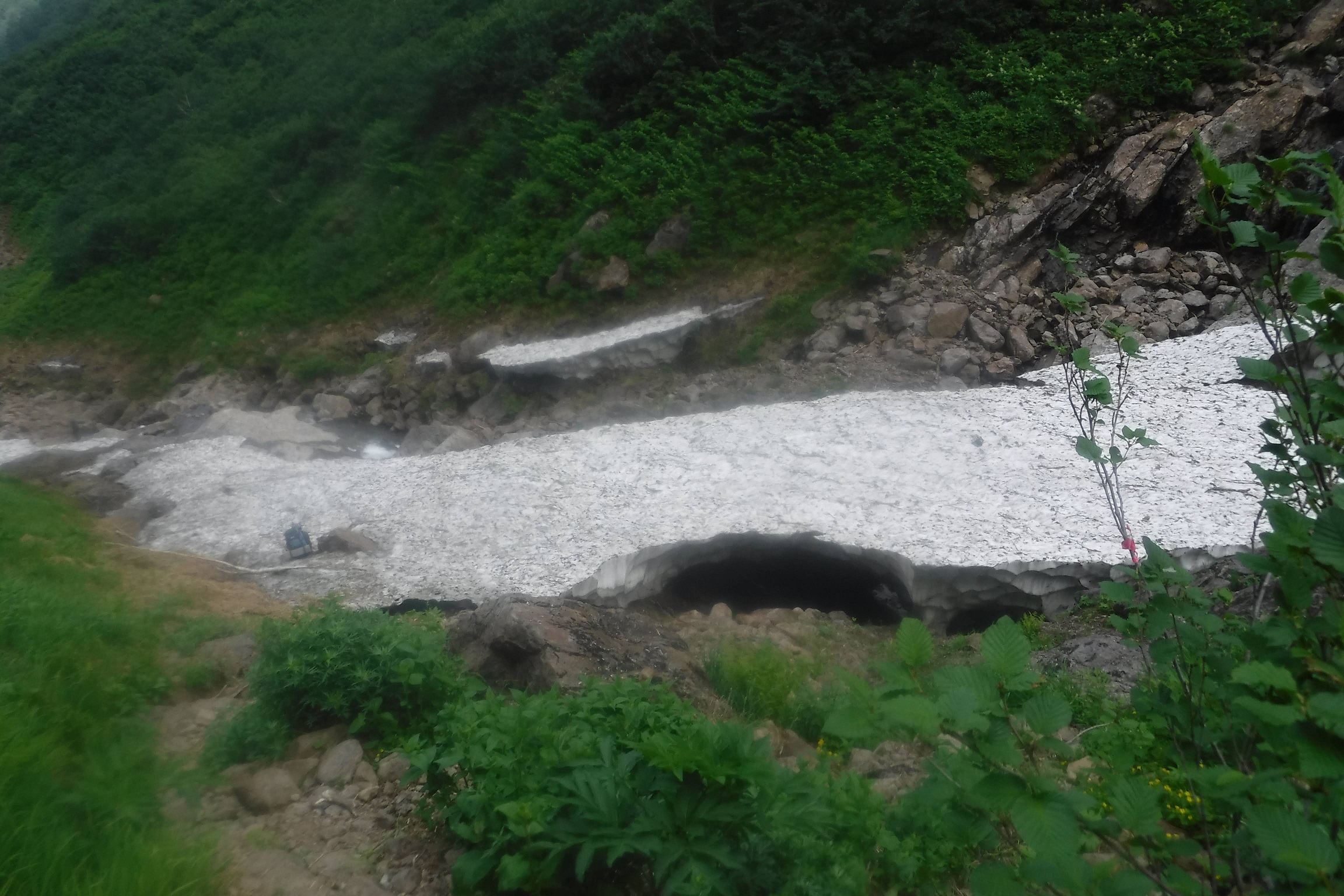 もう、暑くて暑くて…本能的に雪渓で尻セードー!