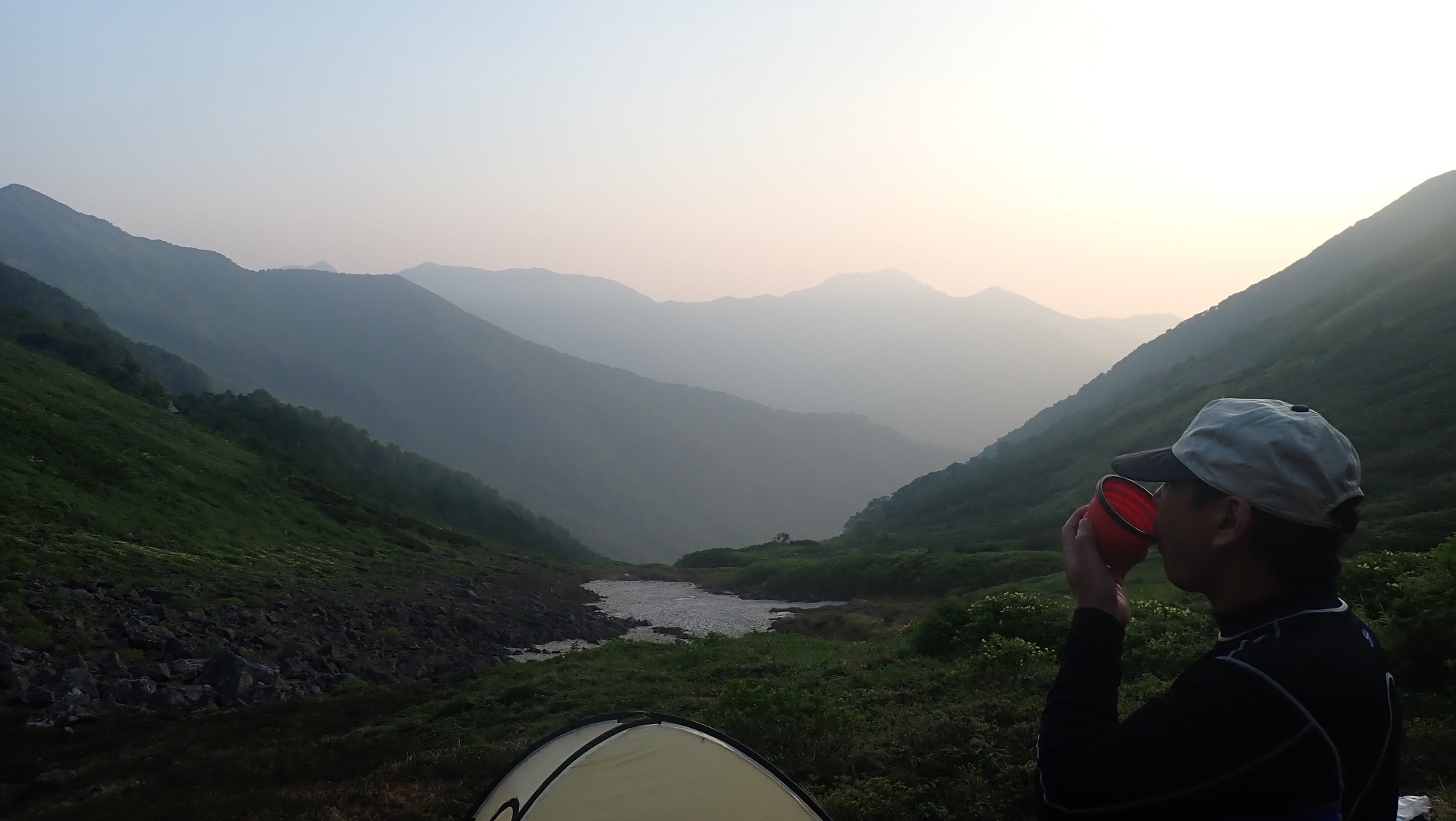 途中の小川で水を取って、九ノ沢カールでテンバ探し