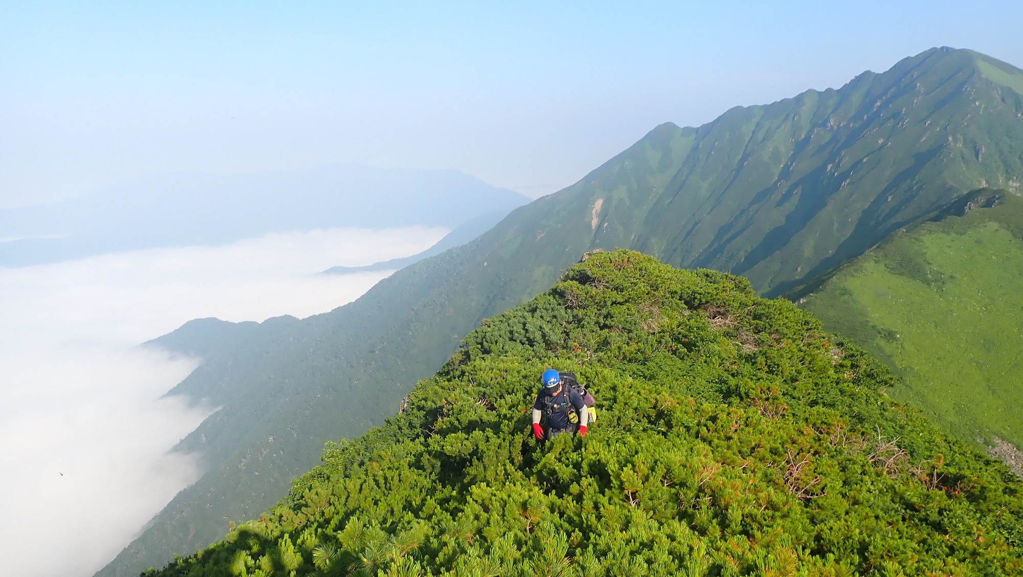 踏み後もあれば不明瞭なハイマツもあり。変化に富んだ稜線歩きでした