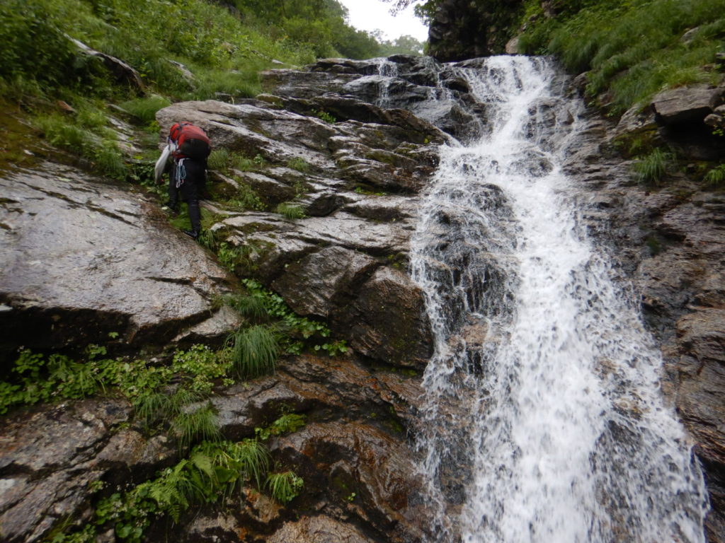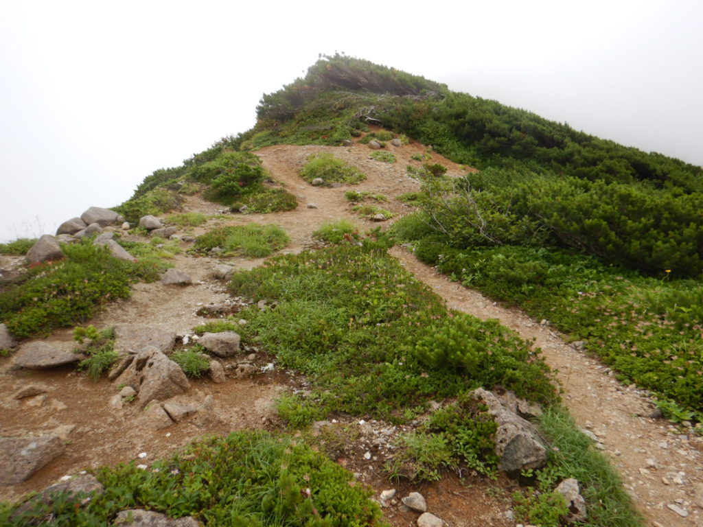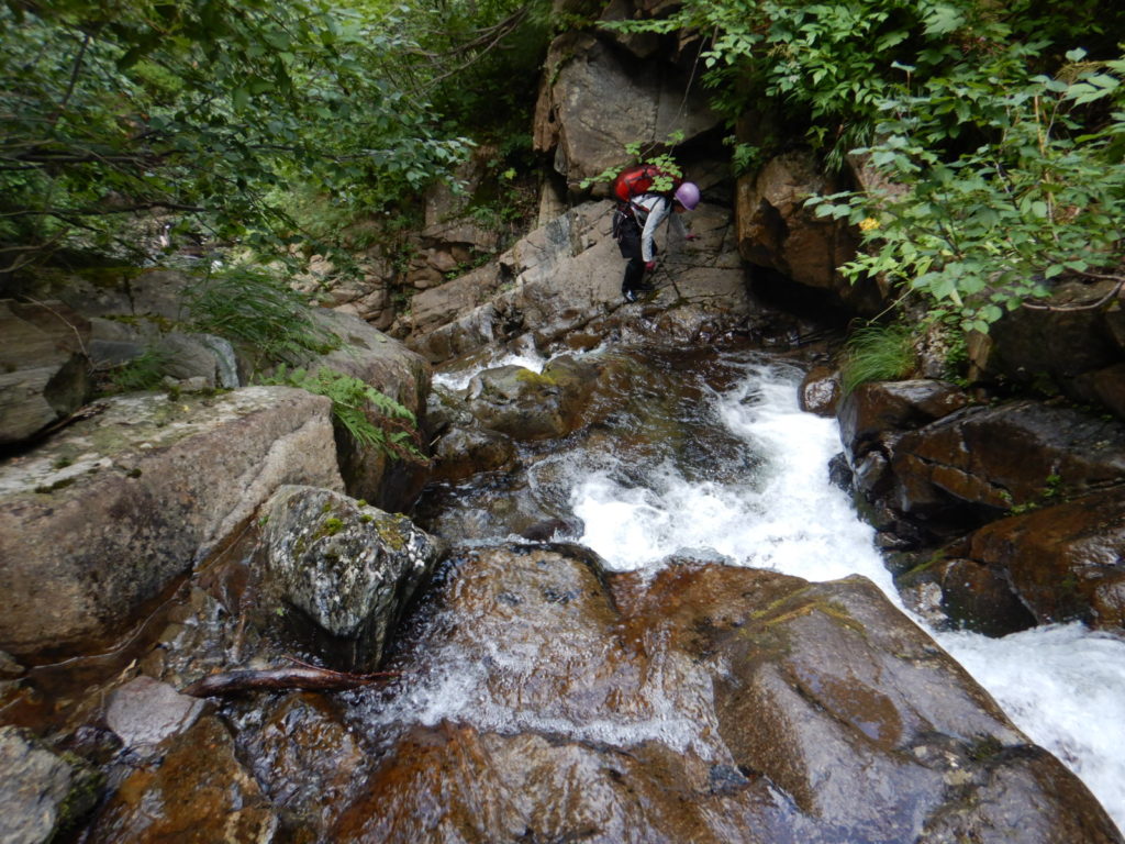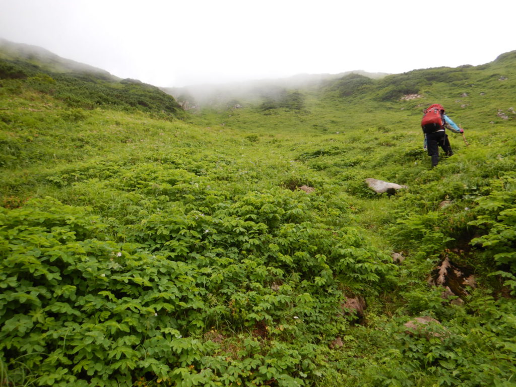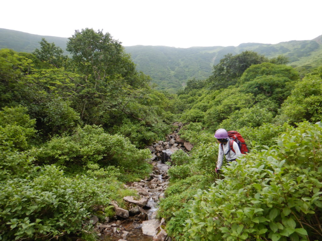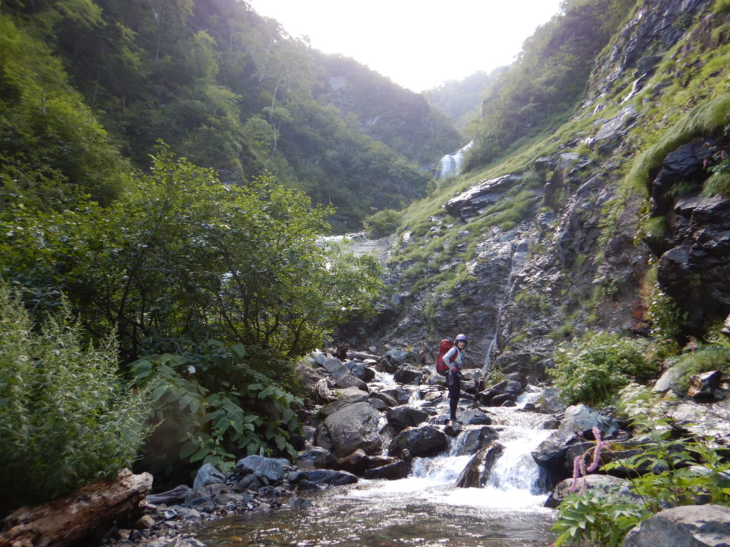一泊二日の予定でカールに泊まる計画がカールに早く着きすぎたので、稜線に泊まることになり水を持ち上げた。稜線の良いテン場はガイド登山のテントが二張り、張るスペースも無いので下山することにしたが、持ち上げた水は無駄になってしまった。結果は泊まり装備を背負っての日帰り登山、年寄りにはきつかったが、この沢は十分日帰りの範囲内だ。