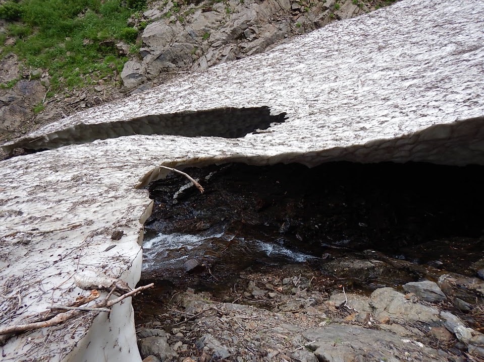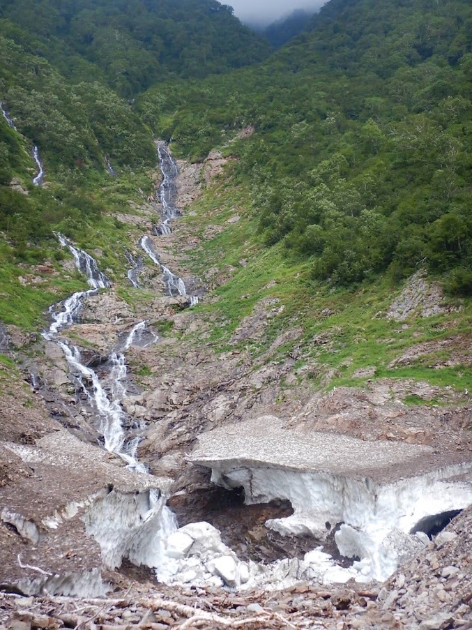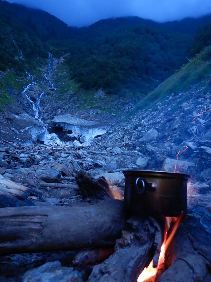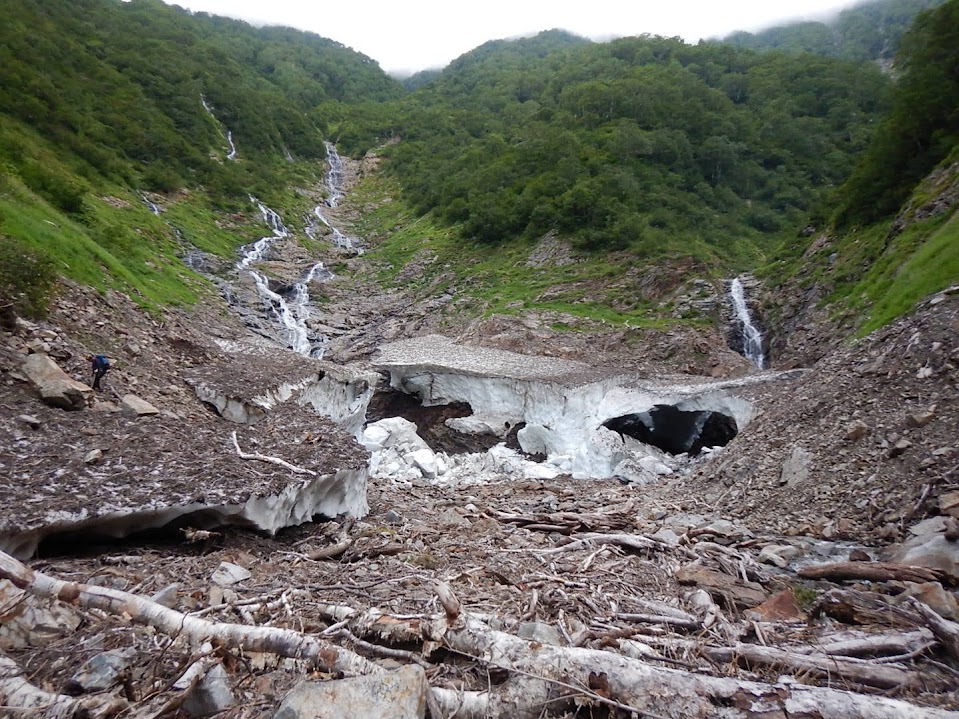 数時間後、上のテン場でこの細い部分が崩壊する音を聞いた