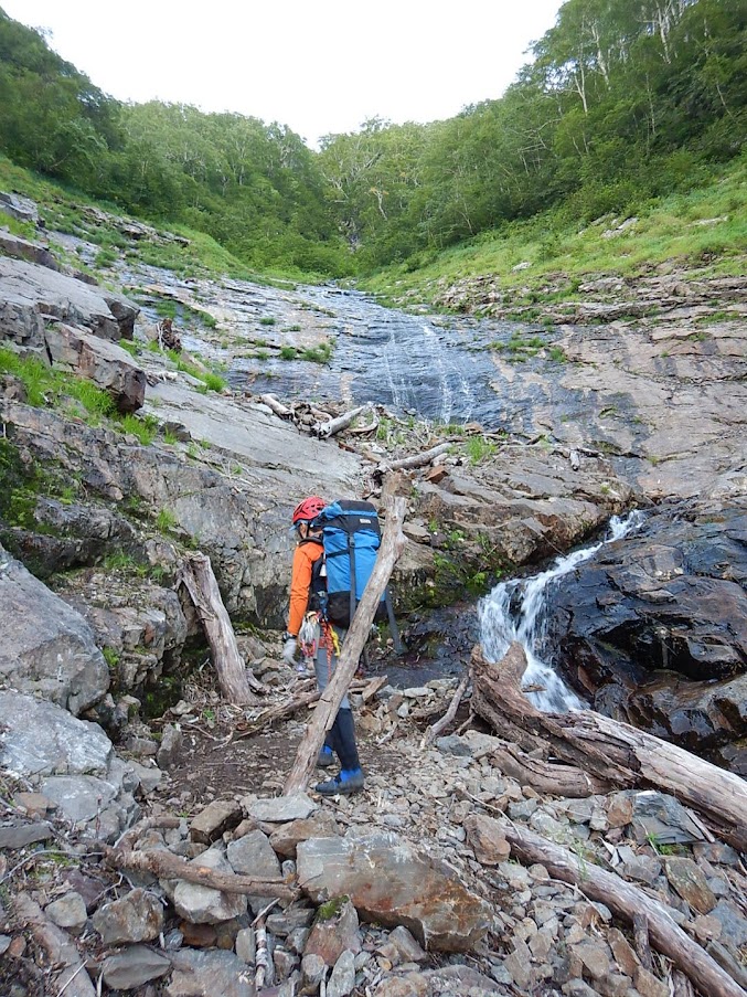 時間があるので歩を進め、核心の滝を超えて幕営することにした。