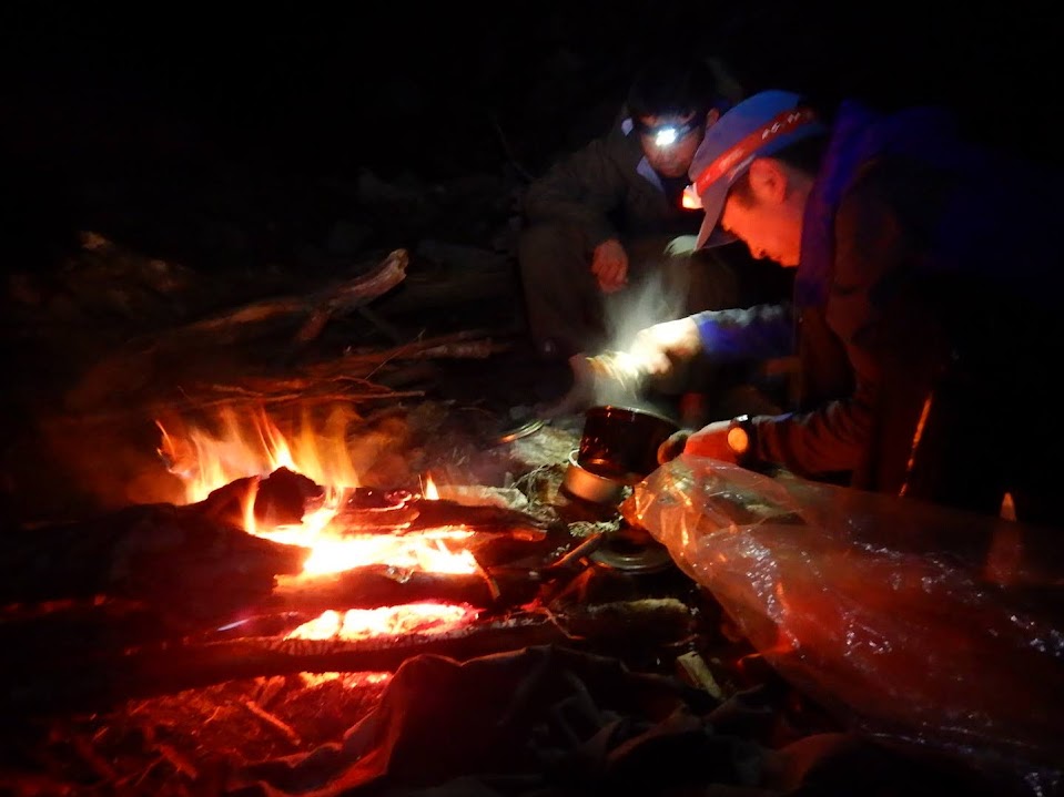 最後の夜は少し寂しい。今夜は焚火のそばでごろ寝。