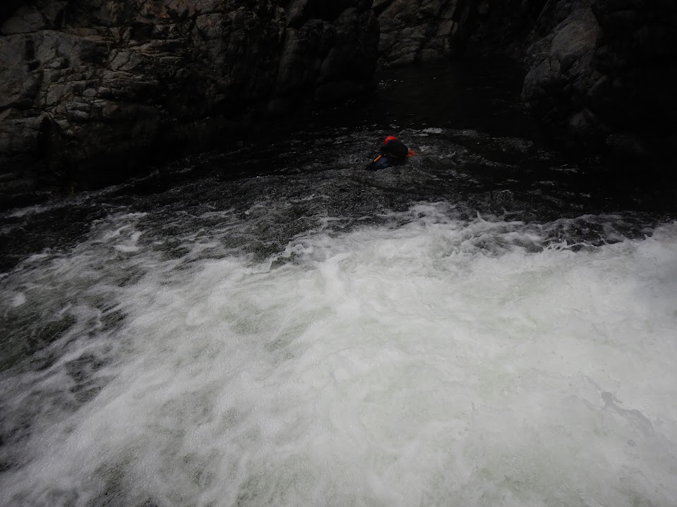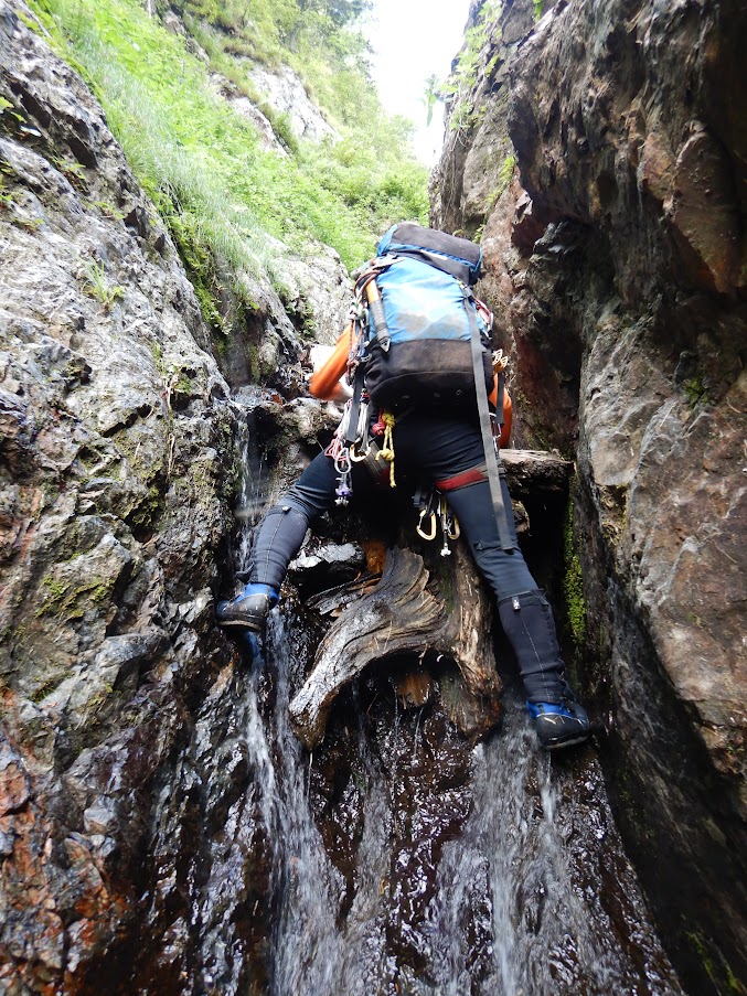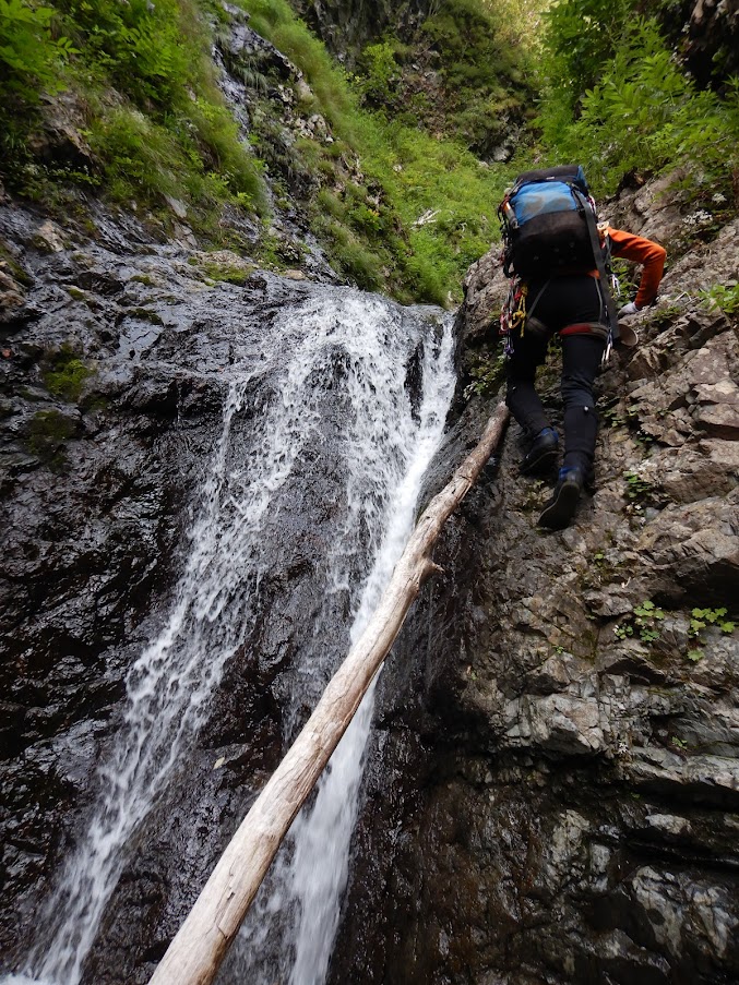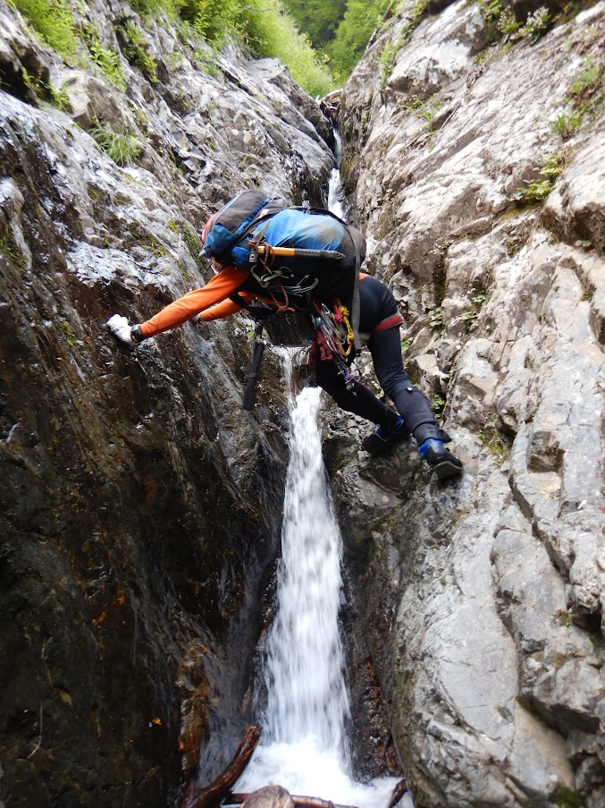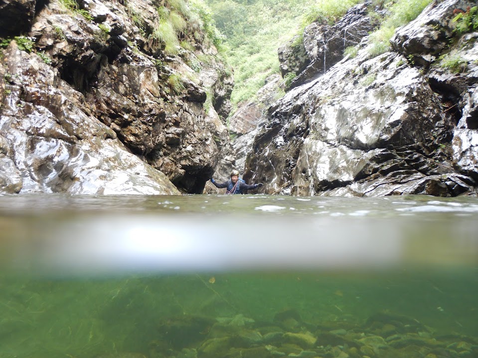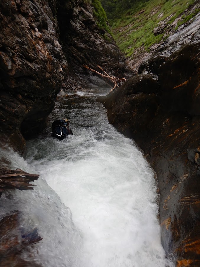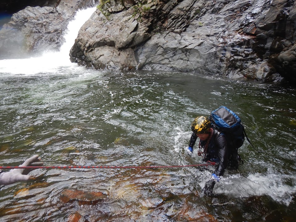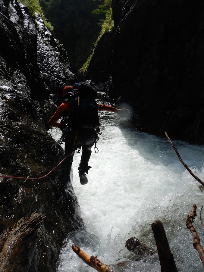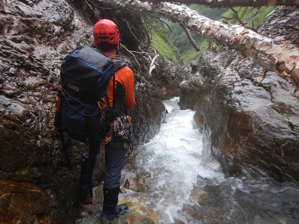 5:50 出発~6:45 722m三股~7:10 八の函、七の函~8:25 六の函~9:35 五の函570m二股~10:00 3段の滝~10:35 四の函~13:00 三の函、左岸巻き~13:20 二の函~14:00 一の函~14:40 キムクシュ出合410m~15:50 S字ゴルジュ高巻き~17:10 480m、C3